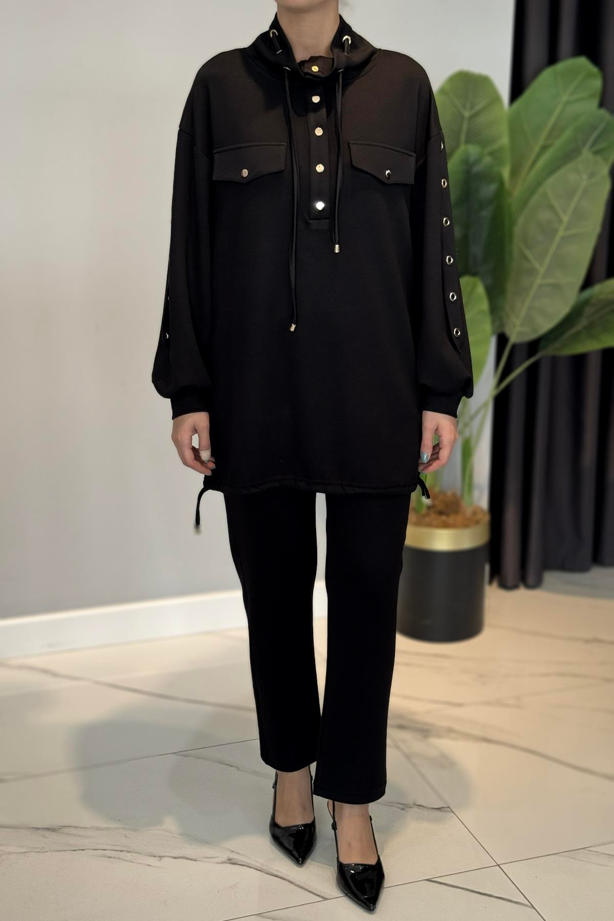 Basic 2li Pantolonlu Takım 25150 Siyah Pantolon ve tunik olmak üzere 2 parça şeklinde takımdır. Hem şık hem spor kombinleyebileceğiniz bir ürün. Manken üzerindeki beden: 1 Beden Manken Ölçüleri: Boy:170cm Kilo:60 YIKAMA TALİMATLARI: -Ilık suda ters çevirilerek yıkanmalıdır. -Tek başına yıkanmalıdır. -Renk verebilir. Kaloriferde vb. direk güneşte kurutmayınız.