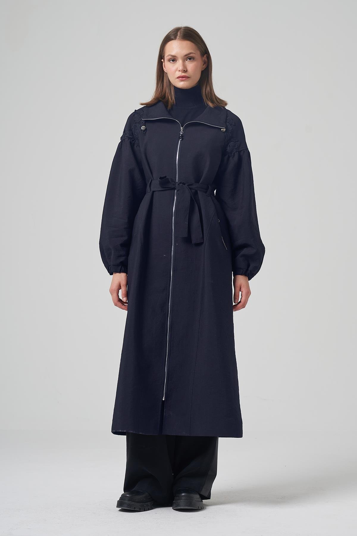 Dantel Detaylı Trençkot 6840 Lacivert Tek parçadır. Hem spor hem şık kombinlerinizde kullanabileceğiniz bir modeldir. Bedenler:1-2-3 şeklindedir. Kumaş Bilgisi: %100 Pes Kullanım sırasında, çanta, aksesuar veya takılara dikkat edilmelidir. Hassas üründür. YIKAMA TALİMATLARI: -Ilık suda ters çevrilerek yıkanmalıdır. -Tek başına yıkanmalıdır. -Renk verebilir. Kaloriferde vb. direk güneşte kurutmayınız.