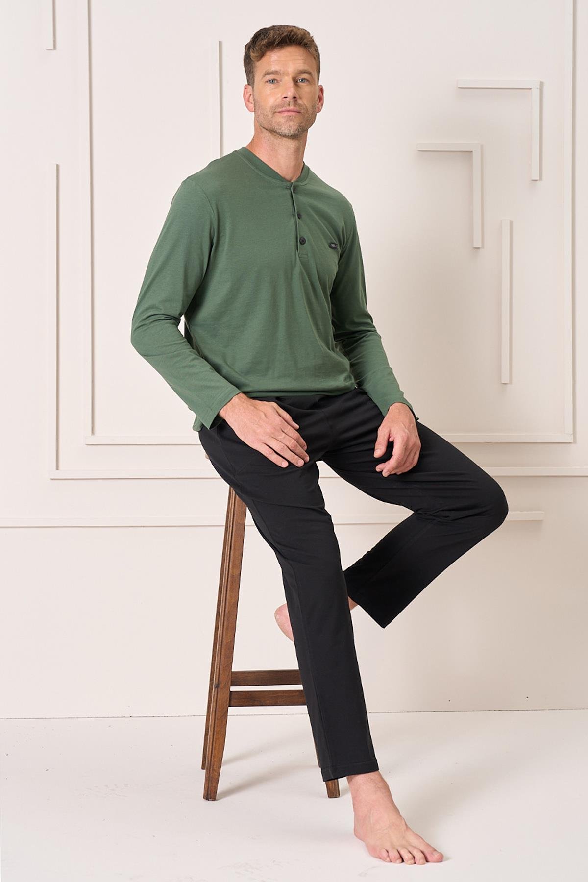 Erkek Pamuk Uzun Kol Pijama Takımı 4105 Yeşil Erkek pijama takımı, rahatlık ve şıklığı bir araya getiriyor. Uzun kollu üst ve uzun alt parçalar, soğuk gecelerde sıcaklık sunarken yumuşak dokusu ile gün boyu konfor sağlar. Evde geçirdiğiniz zamanlarda hem rahat hem de şık görünmek için ideal bir seçim. Yumuşak dokusu ve geniş kesimiyle rahat bir kullanım sunar. Paket İçeriği: Uzun kollu üst ve uzun pantolon olmak üzere 2 parçadır. Büyük bedenler için oldukça idealdir. Bedenler : S-M-L-XL şeklindedir. Kumaş Bilgisi: %100 Pamuk Mevsim: Tüm mevsimler için mükemmel bir seçimdir.