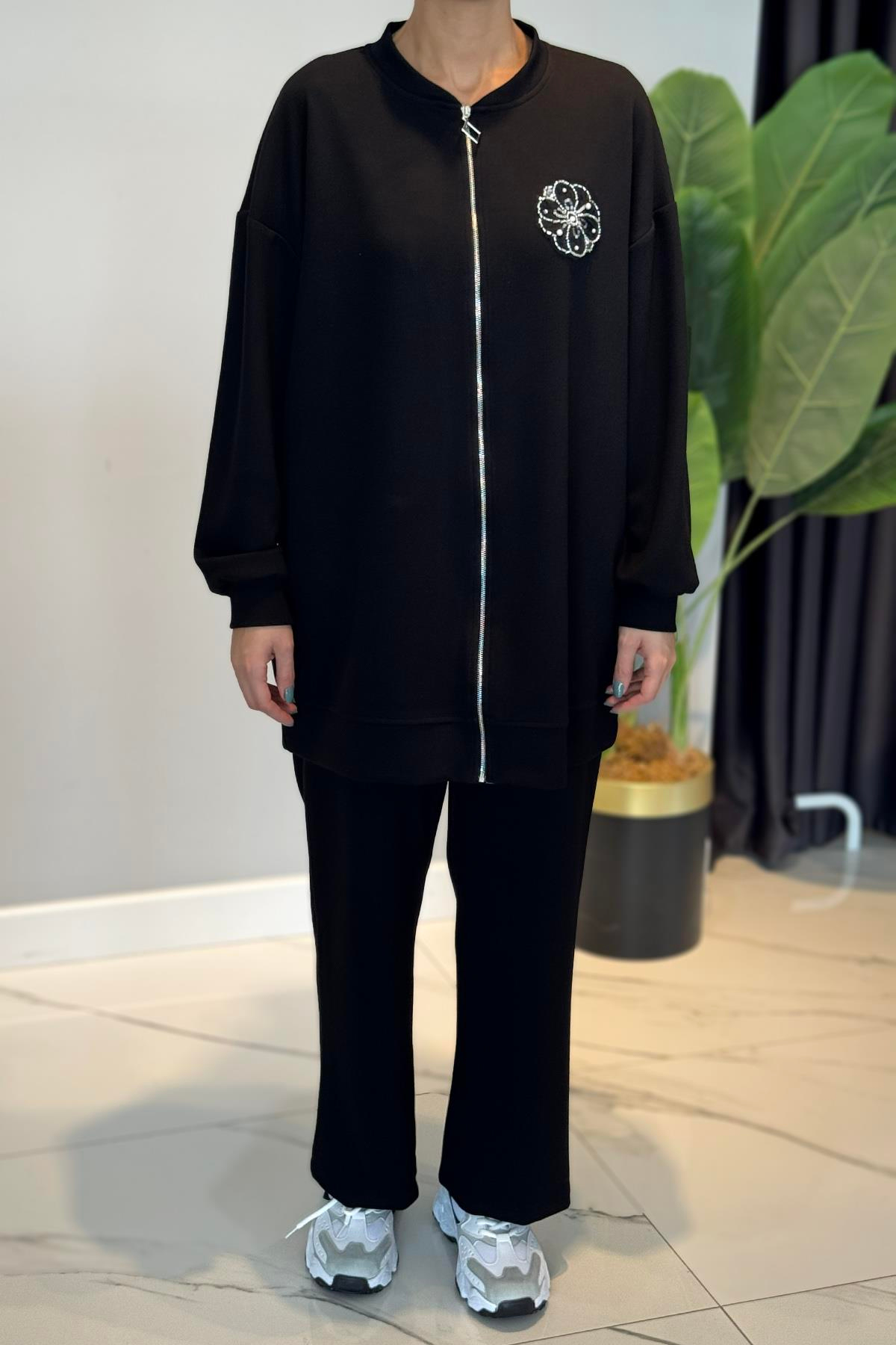 Fitilli Taş Detaylı Fermuarlı Takım 120299 Siyah Tunik ve pantolon olmak üzere 2 parça şeklinde takımdır. Kumaş Bilgisi: %50pamuk %47polyester %3elastik Hem spor hem şık kombinlerinizde kullanabileceğiniz bir modeldir. Bedenler: 36-38-40-42-44-46şeklindedir. Manken üzerindeki beden 36 bedendir. Manken boy:170cm Kilo:60 Kullanım sırasında, çanta, aksesuar veya takılara dikkat edilmelidir. Hassas üründür. YIKAMA TALİMATLARI: -Ilık suda ters çevrilerek yıkanmalıdır. -Tek başına yıkanmalıdır. -Renk verebilir. Kaloriferde vb. direk güneşte kurutmayınız.