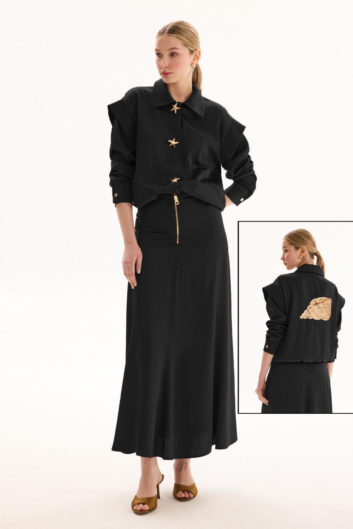 Missemramiss Ceket Etek Takım 4821 Siyah Etek ve ceket olmak üzere 2 parçadır. Etek arkası fermuar detylıdır. Ceketin etek ucu lastiklidir. Ceketin düğmeleri aksesuarlıdır. Çitçıt kapamadır. Arkasında pul işleme detayı yer almaktadır. Hem şık hem spor kombinleyebileceğiniz bir ürün. Bedenler:1-2-3 şeklindedir. 1 Beden=Göğüs:96cm Bel:90cm ÜsBoy:50cm AltBoy:94 cm civarıdır. 2 Beden=Göğüs:100cm Bel:94cm ÜsBoy:51cm AltBoy:95 cm civarıdır. 3 Beden=Göğüs:104cm Bel:98cm ÜsBoy:52cm AltBoy:96 cm civarıdır. Kullanım sırasında, çanta, aksesuar veya takılara dikkat edilmelidir. Hassas üründür.%100polyester YIKAMA TALİMATLARI: -Ilık suda ters çevrilerek yıkanmalıdır. -Tek başına yıkanmalıdır. -Renk verebilir. Kaloriferde vb. direk güneşte kurutmayınız.