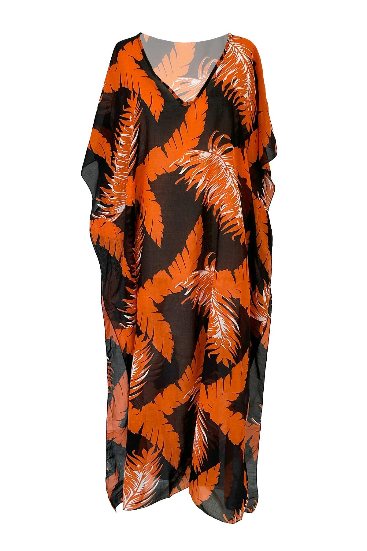 Remsa Mayo Tesettür Mayo Üzerine Desenli Tek Kaftan Pareo REX-P08 (REX-P08-Turuncu-STD)
