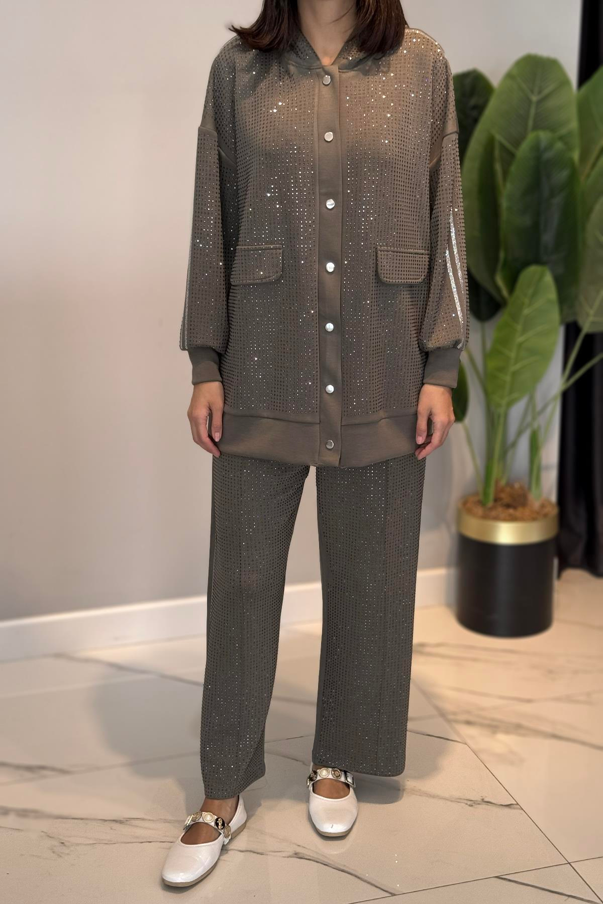 Taş Detaylı Kapüşonlu Modal Takım 120261 Haki Tunik ve pantolon olmak üzere 2 parça şeklinde takımdır. Kumaş Bilgisi: %50 pamuk %47 polyester %3 elastik Hem spor hem şık kombinlerinizde kullanabileceğiniz bir modeldir. Manken üzerindeki beden 42 bedendir. Manken boy:175cm kilo:60 Bedenler:36-38-40-42-44-46 şeklindedir. Kullanım sırasında, çanta, aksesuar veya takılara dikkat edilmelidir. Hassas üründür. YIKAMA TALİMATLARI: -Ilık suda ters çevrilerek yıkanmalıdır. -Tek başına yıkanmalıdır. -Renk verebilir. Kaloriferde vb. direk güneşte kurutmayınız.